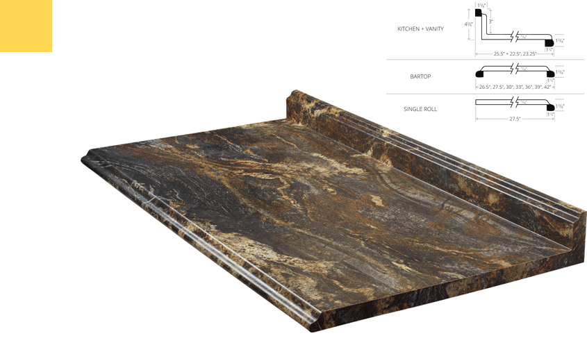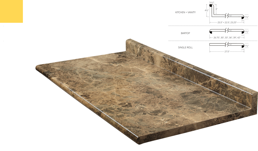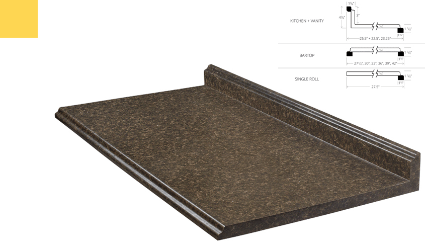 When choosing Traditional counter tops please make a Traditional colour selection and then scroll down and make a selection from the Traditional profiles. Traditional profiles are unique edge styles available on Traditional counter tops.