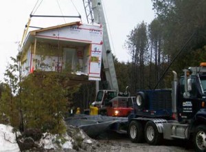 Our home is delivered by way of custom designed hydraulic flatbed trailers and precisely craned onto the foundation.